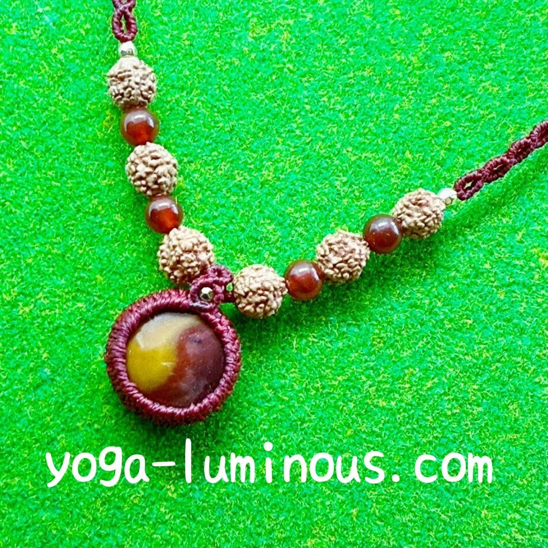それを表す陰陽のパワーストーンと、ルドラクシャ、そしてカーネリアンの結合。