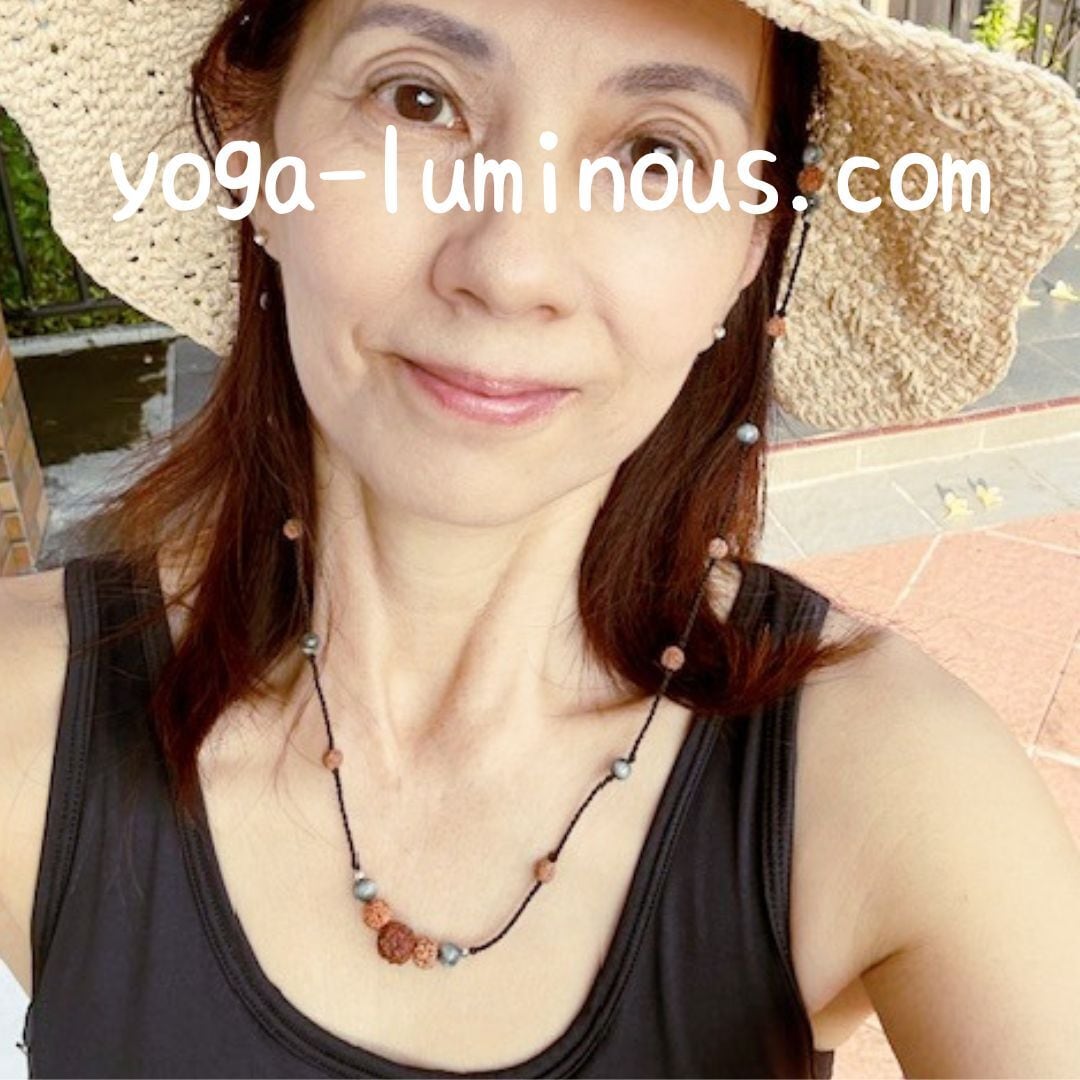 yoga-luminous(ヨガ・ルミナス)主宰:Keikoがバリ島で自らルドラクシャ(菩提樹の実)を採取させていただき、マーラーを作って着用していたところ、「すごいパワーがある!」とのことから、ご要望に応じてアクセサリーを作ることになりました。