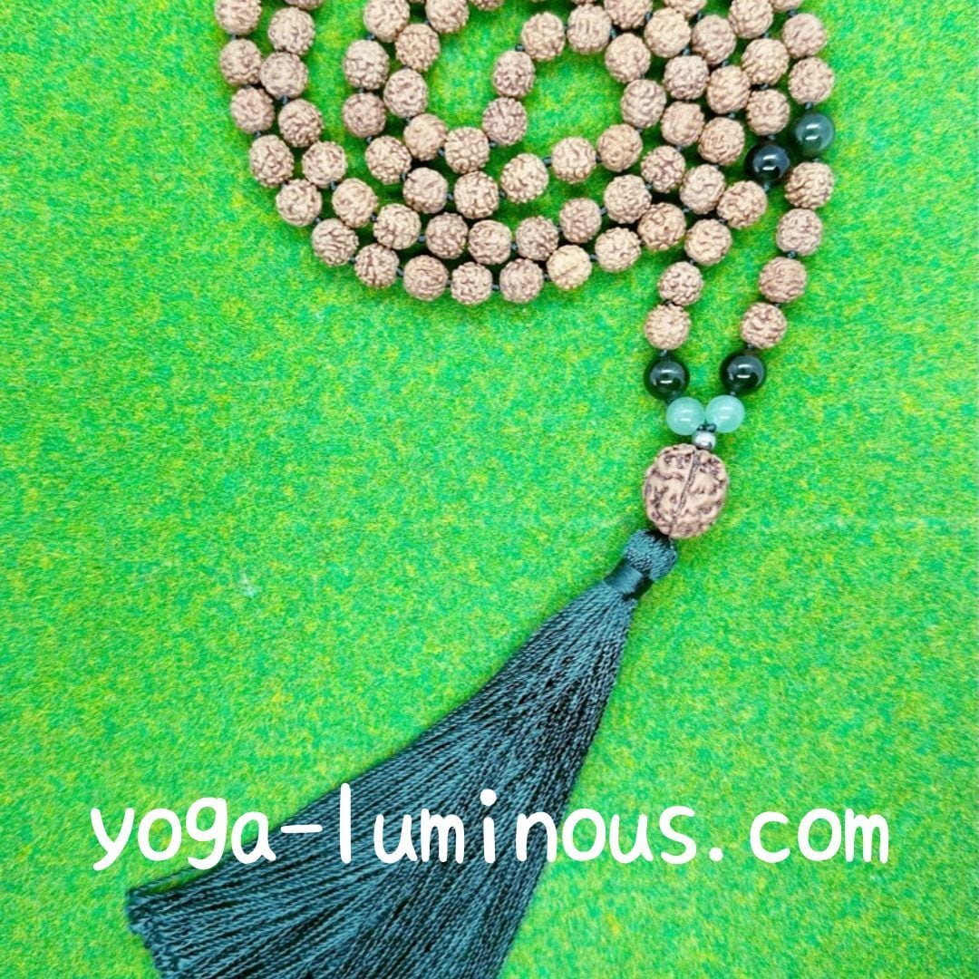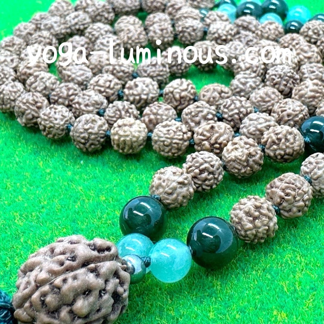 ルドラクシャ・マーラー-ネフライト&アベンチュリン:sacred-rudraksha-mala-nephrite&aventurine
