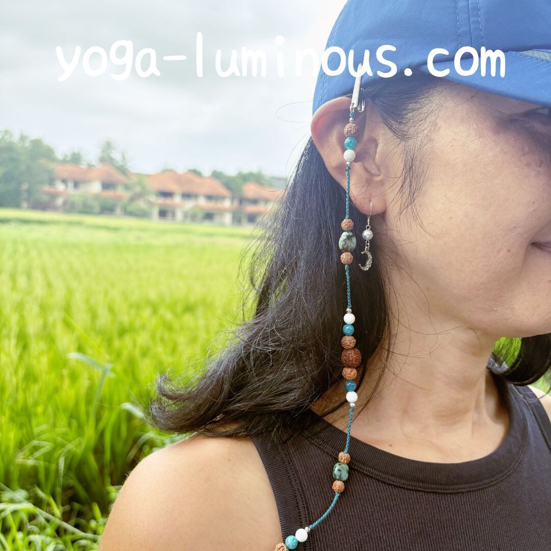 yoga-luminous(ヨガ・ルミナス)主宰:Keikoがバリ島で自らルドラクシャ(菩提樹の実)を採取させていただき、マーラーを作って着用していたところ、「すごいパワーがある!」とのことから、ご要望に応じてアクセサリーを作ることになりました。