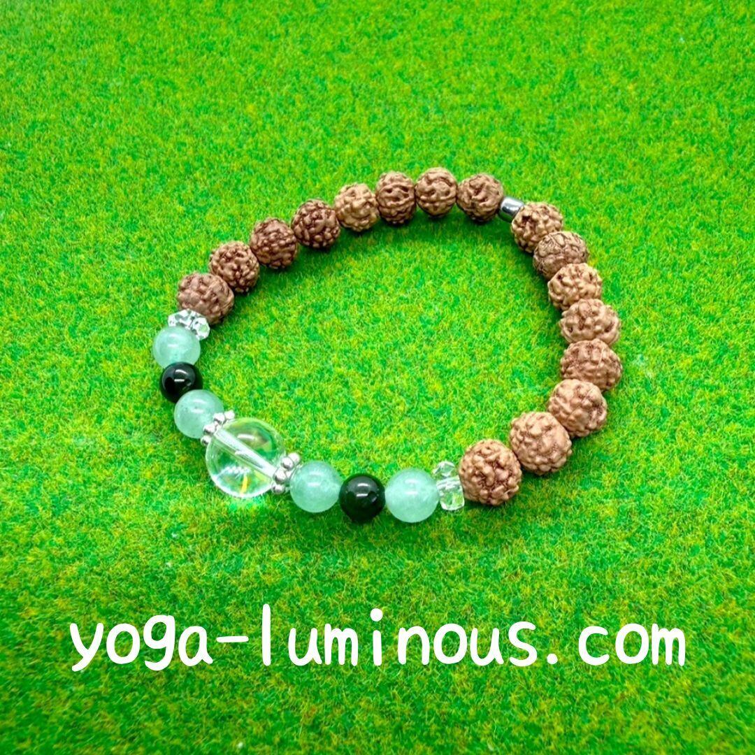 アベンチュリンとネフライトを組み入れたルドラクシャ・ブレスレット。